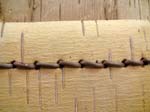 Day 25- Finished sewing panels.  We than began pegging and sewing the gores and where the hull bark pieces fit together.  I also began lashing/sewing the stem piece into the bark with a simple spiral stitch.