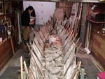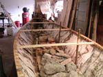 Here you can see the lashings along the gunwales as well as the height sticks supporting the thwarts.