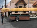 On the trailer and ready to be shipped to Peace River, Alberta near lake Athabasca.  The canoe will be in a 1000+ mile voyage from the town of Peace River to the Pacific Ocean.  The trip will be filmed for French-Canadian television series highlighting the expedition of Alexander Mackenzie to the Pacific Ocean.