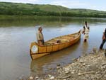 This is the finished canoe with the seams pitched with spruce gum and bear fat