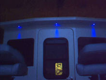 Blue LED lights installed all around exterior for night light (looks neat too) |