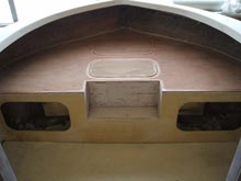 The walls, cabin top and fly bridge were made with ¾” ply. for studs and joists then ¼ Baltic birch ply. was glued and screwed and 6 oz. cloth was applied to the exterior with West System epoxy. All wood was sealed with epoxy.