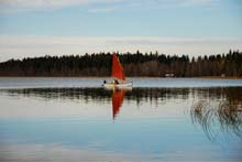 The part I loved the best was hearing the water making musical gurgles and tinkles as we glided over the surface. The lake is deserted at this time of year except for a handful of year round residents. A couple of loons commented on our passing but otherwise we sailed quietly listening to the water music.
