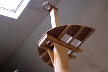All the spars are made from 4 pieces glued together for strength and to ensure straightness. This is the fore mast top ready to receive the fore topmast. |