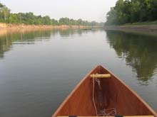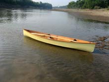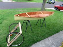 I needed a boat, and it had to be light and it had to be small, as I intended to tow it 6 miles down the road behind a bicycle. I had seen Larry Apelbaum's beautifully- rendered "Swamp Yankee" canoe at a couple of Midwest Messabouts and while I did not try using it I still felt that it would be ideal. At just 11 feet by 28 inches, and under 30 lbs it could be easily carried and launched and other than windage would not present too great a drag to the bicycle. When Messing About in Boats published the plans for the Swamp Yankee in a Fall 2007 issue, I knew my plans where coming togther.