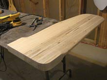 With limited space I need to plan the building of everything carefully. The next item on the list was the centerboard and Rudder assembly. The Centerboard forward half was to be made from hardwood. I checked at the local lumber yard for some hardwood. Maple would be nice and hard I figured. Looked at the price... then looked again. No, I ’m not wrong, $78 for a piece of clear 2x4 maple 8ft long. I don’t think so!