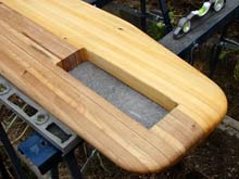 Some sanding and an additional coat never helped. In a nutshell after much sanding and testing later, I went and bought a piece of ¼” oak ply and glued it to the back face of the transom, epoxy applied and put aside.
