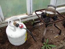 I borrowed a burner used for cooking lobsters, an old pot and I was in the forging business. With all safety precautions in place such as welding gloves, vapour filter mask, goggles etc, I proceeded to melt 50 lbs of lead.
