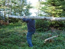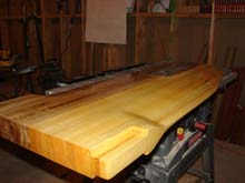 The next trip to my home town, a maple was felled, <pic6> carted to the mill for sawing and then tied to the roof rack of the car. $25 for gas, and $10 for sawing. No less than 4 planks 2x5 x 12 ft long. Enough hardwood for all my needs.
