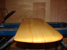 A straightedge was placed perpendicular to the profile on occasion to make sure it maintained an even curve, like an airplane wing. I kept that line of thought as I faired both of them. It was messy but in the end, “wing like”.