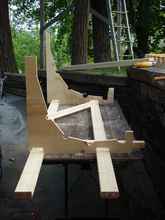 Any sceptic who showed their face in the shop got a demonstration of my grade three art project and magic show. All I would receive would be raised eyebrows and “we’ll see”. Indeed we would. There was as much discussion about the boat/house situation than the fact that I was building a boat. I eventually gave up showing off my art project and just told them to show up on move day. Nobody would place a bet though; I had hoped someone would to help finance this boat. But I digress, I had chosen frame #3 and #5 to copy the profile and make a reversed template as a cradle for the boat.