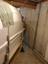 Not wasting time, I installed a new basement door to replace my old one. It’s significant because it’s where the boat will come through. It’s a 42” door, which is enough to give me ½” of clearance on each side when bringing the boat out.