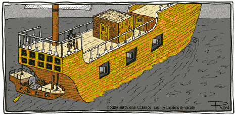 Nearly a year ago, I learned of Guy Capra and his amazing automatic sculling machine. He had invented a simple device that would allow anyone to move a fairly large boat around with a single oar. You have probably seen this done, especially in movies set in Hong Kong or similar exotic locations where the natives propell their relatively large craft with the use of a simple oar over the stern of the boat. Perhaps you tried it yourself and found it impossibly hard to do. Guy's genius is that it makes the process as simple as wagging the end of the oar back and forth.