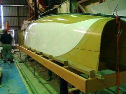 Picture of 8m hull, nicely shaped with gel coat top sides.