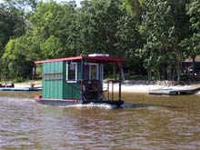 For your consideration for Splash! The "Jus Musin" Shanty based on the Lisa B. Good plans available on Duckworks website. True to plans other than the modification of the front of cabin. Equiped with full controls and 9.9 hp moves along good. Has a Coleman kitchen, and three seat breakfast bar. Captain bench up front. Equiped with navagation lanterns,upper deck and lavatory.