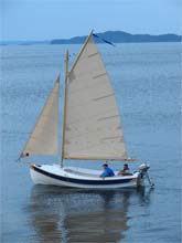 I have attached a couple of pictures of "Pikake", a John Welsford Pathfinder. With construction now complete and a couple of trips under the hull I can finally say how she performs. Swift, stable, and just downright pretty to look at. I've sailed under various conditions and so far no water has come in over the rails or even remotely close. On some calm days Pikake has even served as a ferry to bring relatives to the cabin.