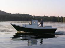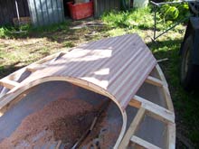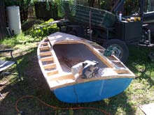 Epoxy was West Marine throughout. I made the sails from bolts of sailcloth, software and hardware purchased from Sailrite (and you guys) according to the techniques in Marino's book "The Sailmaker's Apprentice" - lofted and basted with 3M Super Seamstick, machine seamed and hand finished. She is a deep forefoot keel skipjack design and has no centerboard. Windward performance is good within 4 points of the wind on either tack, and gaff twist is controlled with a vang that can be cleated aft and controlled by the helmsman.