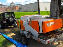 She is about 14' LOD with an 18' LOA (aft boom to bowsprit). Construction was from marine ply and is considered stressed-skin monocoque. Spars are made of laminated poplar, epoxy coated and finished with Pettit Captains Varnish. Overall painted with Pettit Easypoxy undercoater and 2 coats of Pettit Easypoxy Topside paint - she is a trailerable boat so comes out of the water when done sailing. Propulsion in and out of slip/mooring is via a 34 lb thrust trolling motor, Optima Blue Top marine battery and a desulphating solar panel and charge controller/monitor