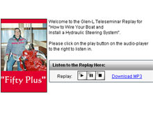 Carl and I had a great time Tuesday night talking to you all on the Glen-L Teleseminar, “How to Wire Your Boat and Install a Hydraulic Steering System”. I hope you all found the information useful. For those of you who haven't heard it yet, the replay is available online.