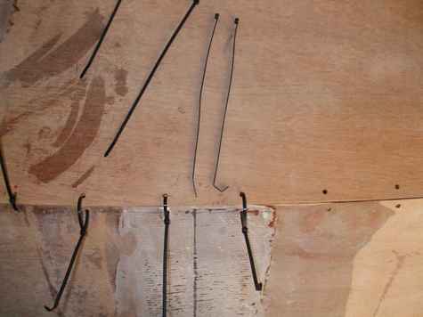 far. Michael Storer uses rope to mount his blocks on the spars.