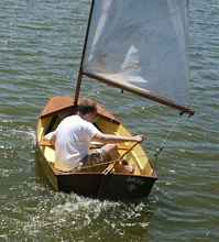 I was fortunate to attend a high school that offered, among other things, a sailing class. I took the class five times, learning to coax beautifully varnished El Toros to windward. I found the courage and funds to buy a home-built Jr. Moth from my Dad's coworker, Loy. The hard-chined scow needed some restoration, a confidence-building exercise in boat painting.