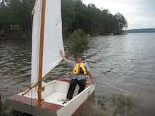 But you will figure it out and learn to cut and how to build and while you’re at it, you’ll learn what makes a boat go and how to get it to go where you want it to. You’ll make your own sails and find out what center of effort is, about sail plans, about rigging, about all things that move a boat by wind through water. There are no sail shapes or plans specified, no rudder shape, no dagger board, centerboard or leeboards that are prerequisite. A class legal PDR is a four foot by eight foot plywood hull with four sides that must be the same for ten inches. That’s it. What you do with her is your choice. You have to figure it out but there will be lots of help, lots of advice, suggestions, ideas thrown at you. Ask for help and you will receive. Then, you choose how to float your own boat. Isn’t that supposed to be the American way?