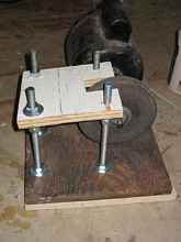 The jig is two hardwood scraps hinged together. Mine are about