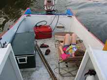 down any junk in the cuddy, or remove it to the cockpit and strap
