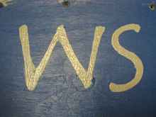 from a stencil. The left side of the “W” is two coats