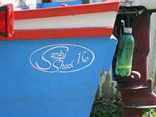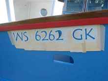 boat with mailbox letters slapped onto it for the registration