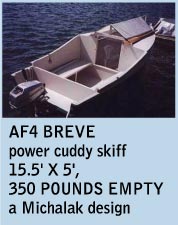 Construction is from plywood using the 'stitch and glue' method, which is easy enough for amatuer builders, and relatively cheap. It also results in a very light and low maintenance boat.