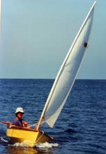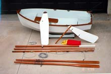 | The sailing rig is the same as the Sabot dinghy with about 38 square feet of sail. All spars and oars stow inside the boat. |