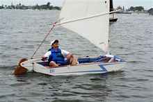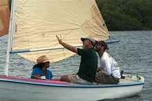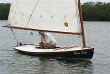 Jay Ludvigh in his personally designed and built “Time II” a ‘Cedar Key 15’ dinghy.