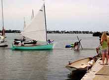 The small boat winner and grand champion went to Marie Cobb in the 10 foot "Bonito". She was about the smallest boat in the fleet after the puddle duck racer and she whipped ass on a lot of larger boats and had to make a diving leap at the bell to beat out Jeff Moates.