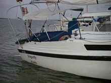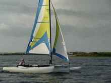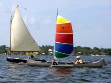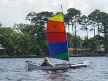Levi sporting a colorful sail, amas made from PVC pipes normally