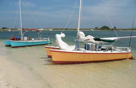 In the morning, my wife Nancy joined me for the downhill run back to Sand Island. We had a great run, surfing on the little waves that developed on Santa Rosa Sound, often hitting 8 knots. Once again, we were faster than the Windriders, though perhaps the outcome would have been different on a reaching course. It’s also possible that the Windriders were a little overloaded, carrying camping gear and supplies for four days and three nights.