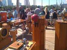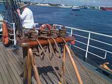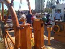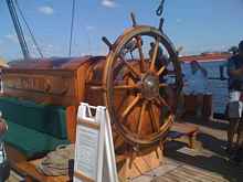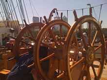 As weather helm increases, add another crewman to help steer, gear driven. The crewman was greasing the gears.