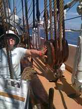 Note the cadet from the Coast Guard Academy, boarded the ship in Cozumel, Mexico 4 weeks before. Tours of duty ranged from a few weeks up to 3 years. Eagle seagoing Classroom.