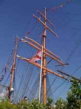 Columbia Rig: barque, 3 masts. Length: 249' overall, Mast Height: 127' Tonnage: 1300 Gross, 1097 Displacement Crew: 150