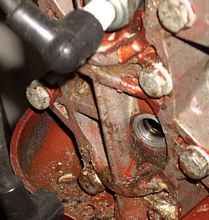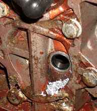 You are now ready to install the insert. Apply a small amount of RTV silicone of you choice to the threads of the insert. It just needs to be of the high temperature variety. Thread the insert all the way into the newly cut hole. Take the supplied driving tool and stick it into the insert and carefully hit it with a hammer. You are only trying to spread the thin mild steel knurled portion of the insert, so you don't need to get the biggest hammer you own. Cracking the head would surely ruin your day so don't get carried away. Wipe away any silicone that squeezed out. Let the motor sit overnight to allow the silicone to cure.