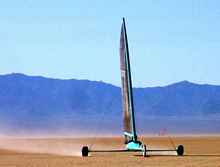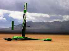 A back country ski buddy had invited me down, and offered to lend me one of his boats to experience this new way of sailing. I arrived to a long line of RVs with trailers parked along the edge of the massive playa, and a bewildering array of cunning craft, from the tiny minis, built of aluminum tubing and dacron sails, to the most sophisticated racers sporting sleek carbon fiber bodies and solid wings. Also in attendance was Richard Jenkin's Greenbird, a purpose built craft designed to break the landsailing speed record. I was graciously lent a Manta single, a simple entry level boat, which gave me a great taste of the acceleration and adrenaline rush this sport offers. Imagine flying a hull (or wheel) on the edge of control, at twice the speed of our cats, with the same potential for disaster that a moment of inattention on a cat can provide! Instantly addicting!