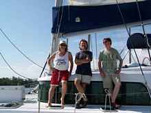 Ron Reed on the left, who chartered the boat in pursuit of furthering his sailing education, me in the middle, who gleefully went along for the ride, and on the right is Tom Musselwhite, a backcountry ski and saling buddy of mine.