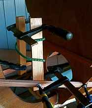 using a couple of sticks clamped to the stringers to lever