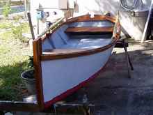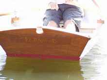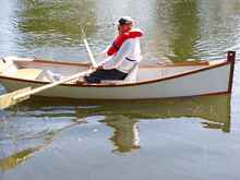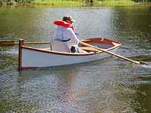 The Fr. Browne skiff floats on her lines, tracks well, and rows