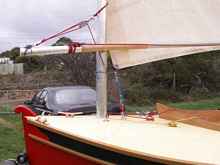 John Welsford seems to me to be unique among designers in that he accepts that builders alter his designs by putting their own interpretations or ideas, into the details of his designs. I have seen where he has written that no two Houdinis are the same! I have taken the liberty of deviating from the plans in a number of areas in my build. Looking at other Houdini builds on the internet I have picked up good ideas. In looking at other designers such as Iain Oughtred I have seen different detail design. My sailmaker didn’t like the idea of a roach and battens in the sail, as it made it difficult to roll up around the yard for transporting. So he made the sail with a hollow cut leach and a taller head to make up for the sail area loss.