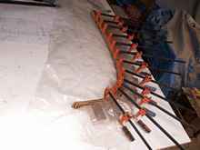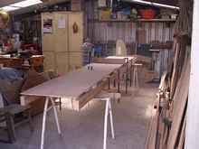 Frames and centreboard made, bottom panel scarf being glued up.