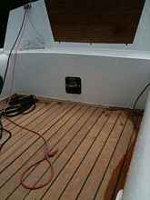 The boat keeps you nice and dry in a chop and has loads of useful storage spaces. The cockpit floor is a fabulous platform for swimming or snorkelling, and is very easy to get back onto. In fact of all the aims we set for this boat she has exceeded expectations in all of them.