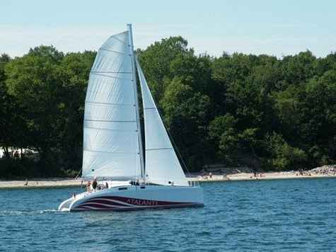 On the day the picture was taken more multi hulls where sailing on the Foerde. All where bigger as the KD 860. He was sailing in the first part of the crowd, but before the wind she was the fastest boat (a surprise to me in the way).