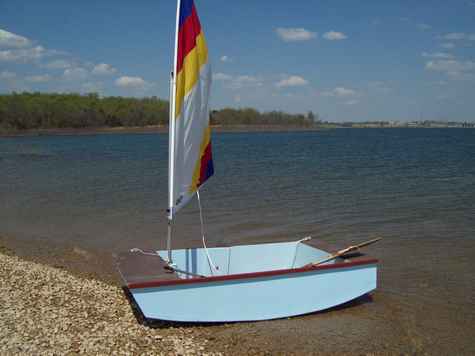 She's named "Anna Jane" after my grandmother and I sailed her for the first time on Springfield Lake, here in Springfield, Missouri. The boat was my first real experience in wood working, but won't be my last.