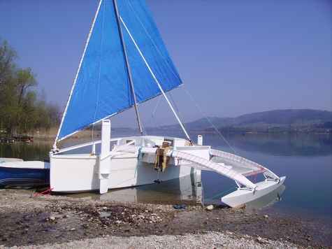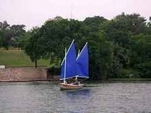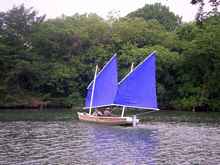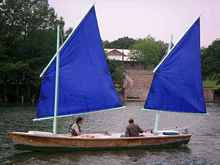 I made the yard and boom a little oversize for two reasons: I wanted extra flotation in case of a knock-down, and I thought the other Laguna's I saw had too much flexibility in the spars so that the sails flattened too soon in a breeze. These seemed nicely stiff.